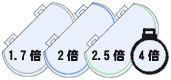 | 倍率 | 1.7倍 | 2倍 | 2.5倍 | 4倍 |